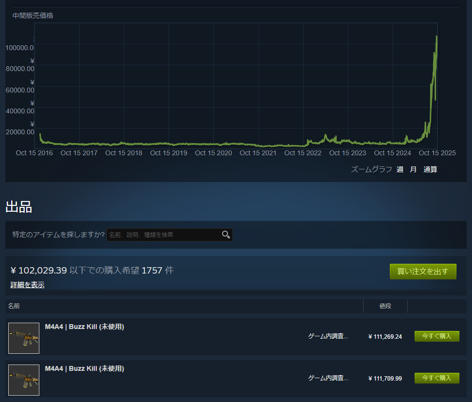 2024年~2025年にかけては全体的にスキンの急騰が見られており、「スキンバブルなのでは?」といった声もあります。