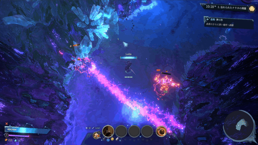 Shape of Dreamsは操作キャラクターを中心とした俯瞰視点のアクションゲームとなっています。敵の攻撃を回避しつつ、スキルを駆使して敵をなぎ倒していきます。最終的にとあるボス(ネタバレ回避)を撃破することがこのゲームのクリア条件です。