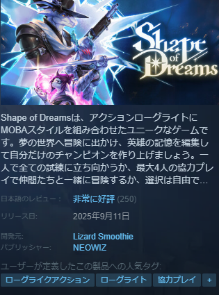 引用:Steamストアページ→https://store.steampowered.com/app/2444750/Shape_of_Dreams/